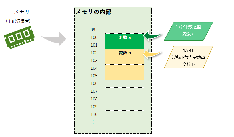 変数は取り扱いの制限がレジスタに比べて緩い事に対して、メモリ領域の管理を徹底する必要があり、